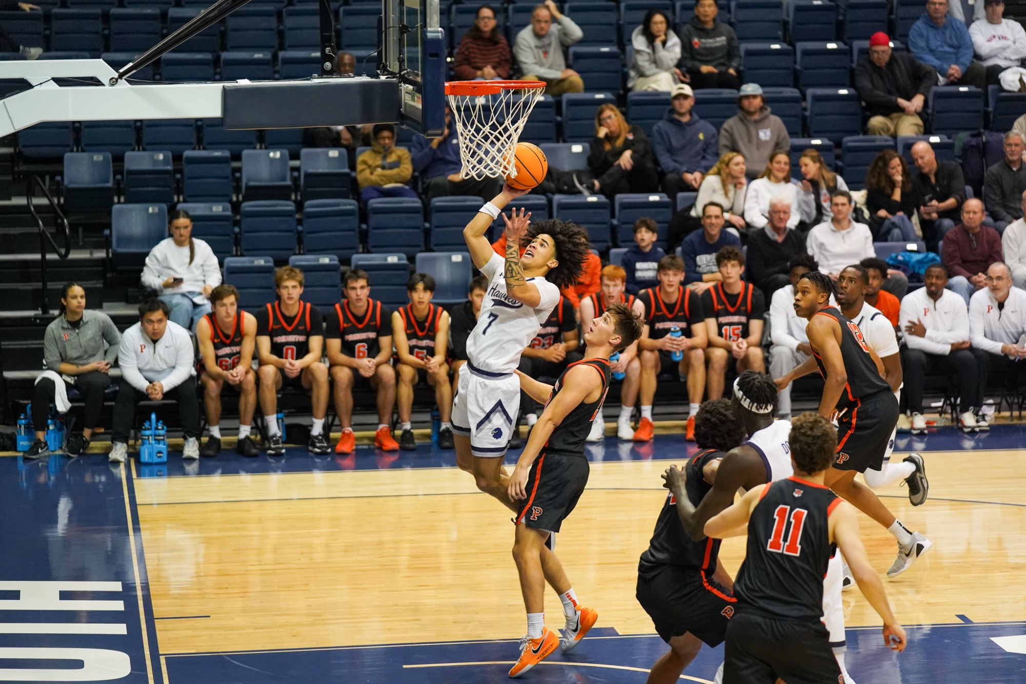 Whitney Coleman's drive tied the game at 2-2, Monmouth took its first lead of the contest at 7-6 behind a Taylor three-point play with 14:23 remaining until the break. SPC (1-1) responded with a 9-0 run, highlighted by Wesley Jenkins' corner three-pointer, with 9:47 left, to give the Peacocks at 15-7 lead.