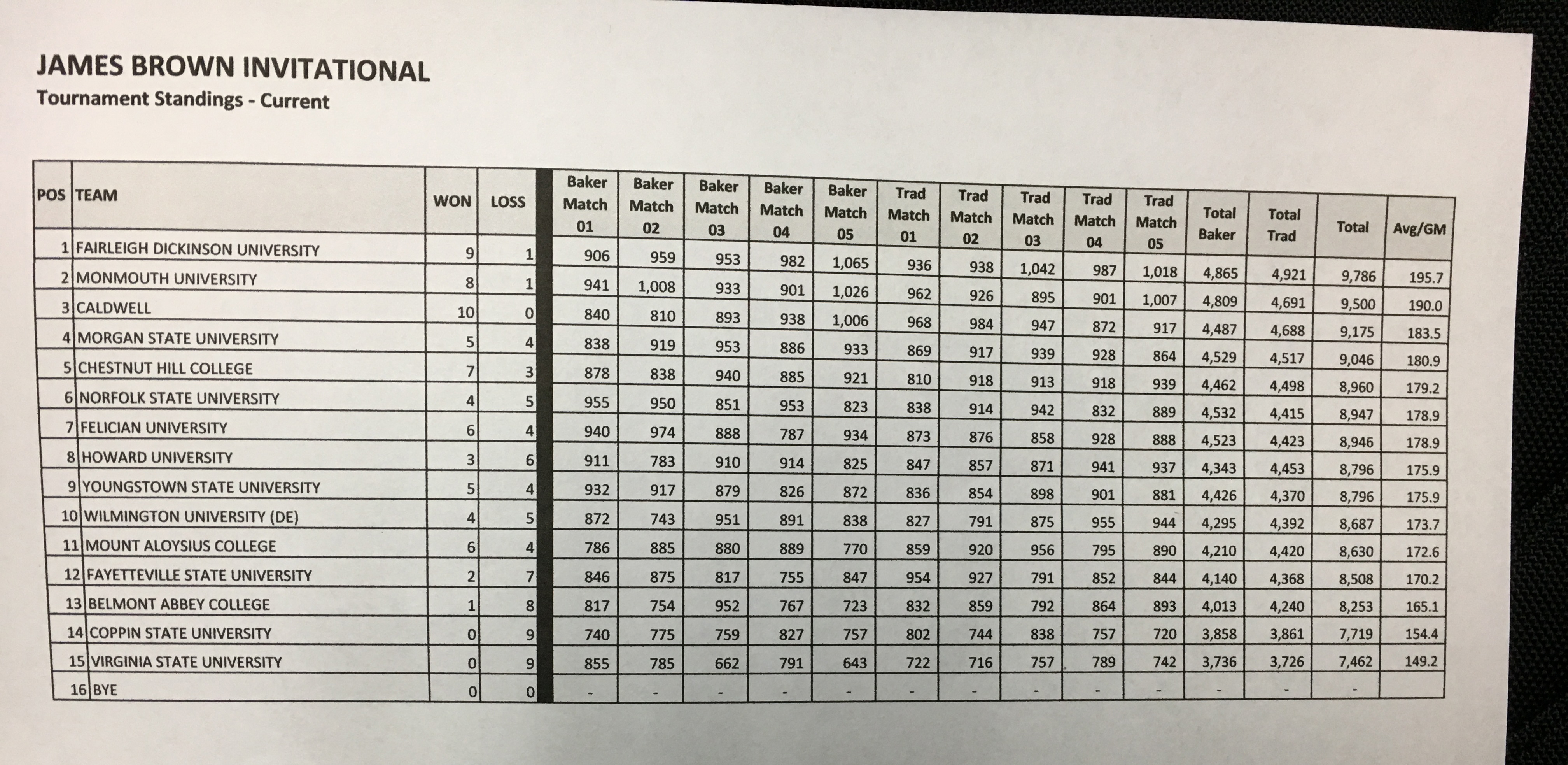 - Monmouth's largest margin of victory was 269 pins in the Baker match win over Coppin State (1,026-757).